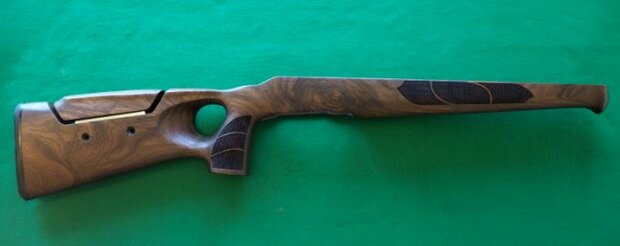 Deze Walnoten houten duimgat kolf is specefiek voor de Blaser R8. De kolf wordt geleverd zonder metalen...