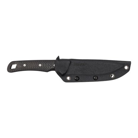 Het drop-point lemmet van 11 cm biedt uitstekende controle en stabiliteit, waardoor het geschikt is voor zowel grove als delicate taken. Het handvat is gemaakt van hoogwaardig carbon fiber en is drievoudig gebout, wat zorgt voor een stevige grip en duurzaamheid. De Blaser Ultimate Carbon Fiber Knife 110 is gestyled naar de Blaser carbon fiber voorraden en wordt geleverd met een handige Kydex schede en riemclip. Met een gewicht van slechts 109 g is dit mes een onmisbare metgezel bij elke jachtavontuur.