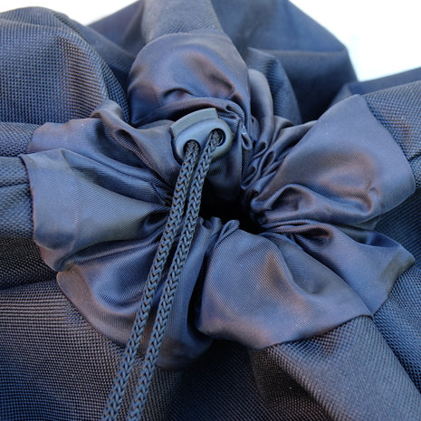 • De tas sluit met een koord en klem (hetzelfde geldt voor de kleine zak aan de zijkant).