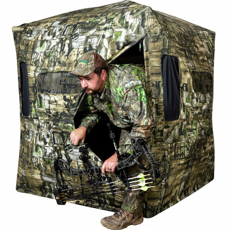 Primos bracht u de Originele Blindering Zonder Blinde Vlek met éénrichtings-doorkijk technologie. Nu, de Double Bull SurroundView Max biedt dat allemaal en nog veel meer, te beginnen met een volledig 180° eenrichtings zicht, plus een ingebouwde zonneklep om maximaal zicht te behouden wanneer de zon op zijn laagst staat bij zonsopgang of zonsondergang. We hebben ook een veelzijdigere deur met rits- of bungeesluitingen toegevoegd voor stiller in- en uitstappen. Blijf verborgen en haal het maximale uit uw gezichtsveld met de SurroundView Max!