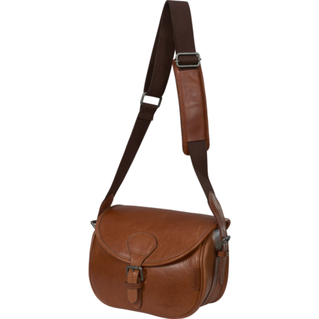 De Retrieve Cartridge Bag is gemaakt van slijtvast volnerfleer, dat een patina krijgt en met gebruik nog mooier wordt. De tas heeft een canvas draagriem met een schouderstuk voor comfort, evenals een gesp om de bovenklep te sluiten.