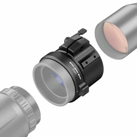 De Rusan MAR (Modular Adapter Repeatability) onderscheidt zich door een slim ontworpen tweedelig sluitsysteem. Dit systeem zorgt ervoor dat het hoofddeel van de adapter (los verkrijgbaar) permanent op de lens kan blijven zitten, terwijl je de apparaat-specifieke connector in slechts enkele seconden kunt bevestigen met een bajonetsluiting. Deze constructie garandeert een uitzonderlijk hoge precisie en herhaalbaarheid, zodat je dezelfde warmtebeeld- of nachtzichtapparatuur op meerdere optieken kunt gebruiken zonder verlies van nauwkeurigheid.