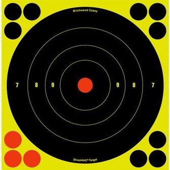Met de Shoot-N-C 8" Targets van Birchwood Casey kies je voor kwaliteit, gemak en efficiëntie. Dankzij de fel oplichtende kogelinslagen, de zelfklevende werking en de herbruikbaarheid door de meegeleverde reparatiestickers zijn deze targets dé standaard voor jagers, sportschutters en hobbyisten. Verbeter je schietervaring en bestel vandaag nog dit handige 6-pack voor de ultieme precisietraining.