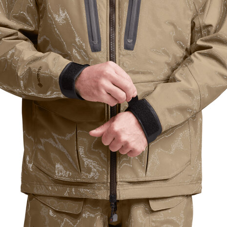 Watervogeljagers waren op zoek naar een jas waar ze een systeem omheen konden bouwen. Een die bewegingsvrijheid biedt, gelaagd kan worden en ultieme bescherming biedt tegen verschillende omstandigheden en weersomstandigheden in het late seizoen. Ons ontwerp was gericht op het gebruik van een GORE-TEX® 3-laags laminaatoppervlak met GORE-TEX® met STRETCH-technologie in de schouder en nek. Volledig winddicht, waterdicht en ademend - plus de mogelijkheid voor onbeperkte beweging in krappe ruimtes - maakt dit een dodelijke combinatie van technologieën. Voor isolatie hebben we gekozen voor PrimaLoft® Gold om warmte te garanderen waar het telt. De Hudson biedt maximale bewegingsvrijheid en comfort met isolerende eigenschappen voor de aanhoudende regenval en kou die u ervaart tijdens een hele dag jagen op watervogels.