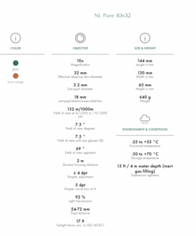 Als elk detail telt - met een vergroting van 10x garandeert de NL Pure 32 dat u niets mist, terwijl het lichte gewicht (640 g) en compacte ontwerp u in staat stellen comfortabel te observeren, zelfs gedurende lange perioden.