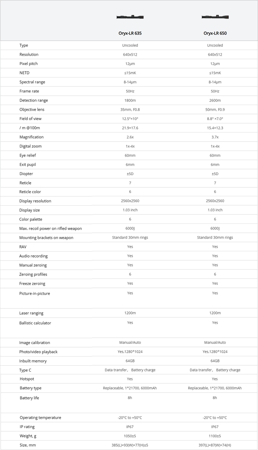 Met een gebruiksduur tot 8 uur op een verwisselbare 21700 batterij en extra functies zoals recoil-activated video en een stille lensdop, is de Oryx-LR 635 volledig uitgerust voor intensieve jachtsituaties en lange observaties.