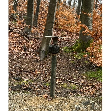 Bevestiging: aan een boom: met een 180 schroef + M20 ring, - met een touw of ketting / aan een boomsteun: - met een ijzeren staaf / aan een paal met dak (aanbevolen!)