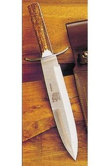 24 cm lang lemmet van 440 roestvrij staal Heft van hoorn Wordt geleverd met een leren schede van hoge kwaliteit